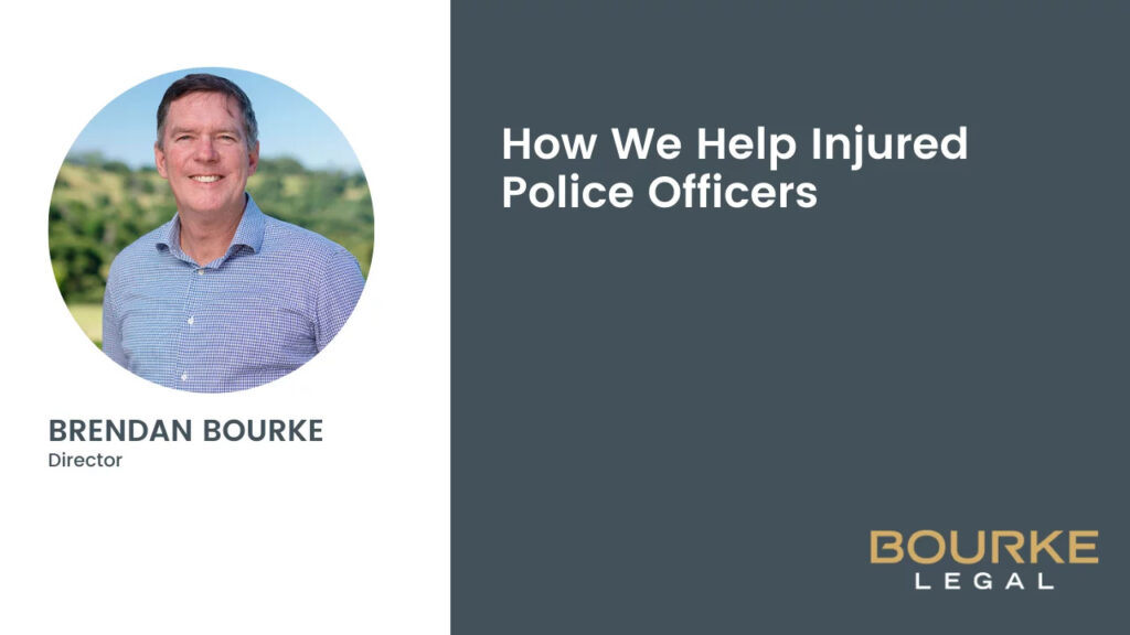 In this video, Bourke Legal Director and Personal Injury Lawyer Brendan Bourke shares how Bourke Legal can help injured police officers. How Bourke Legal can help injured police officers Transcript Hi, I'm Brendan Bourke from Bourke Legal. If you're a police officer watching this, chances are you're feeling sick at the thought of going back…